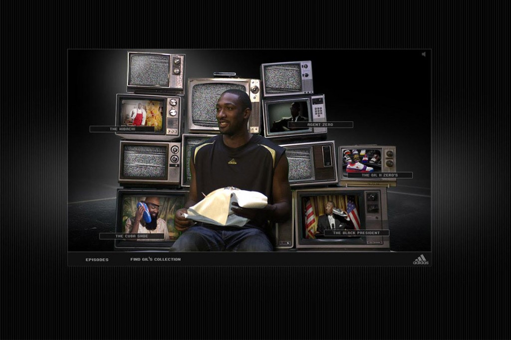 This campaign began years of collaboration with Adidas. Gilbert Arenas was Adidas’s big star and they wanted a quirky site experience to go along with his on court personality, or multiple personalities. Refered to as, “Inside the mind of Gil” We helped Adidas host a series of shoes inspired by Gilbert Arenas multiple athletic personas. Select shoes had back stories or content inspire by Gil. There was a waiting looping cutscene of Gilbert doing things as you browsed. Also inspired by his shoes.