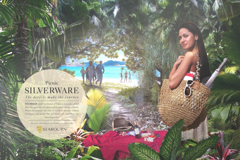 I enjoyed the luxurious treated imagery all painting a story driven by a key detail. An umbrella in a drink, letting someone challenge a chef, a custom picnic setting, a fresh fish hand selected. The focus was on the interesting characters that travel Seabourn Cruises.