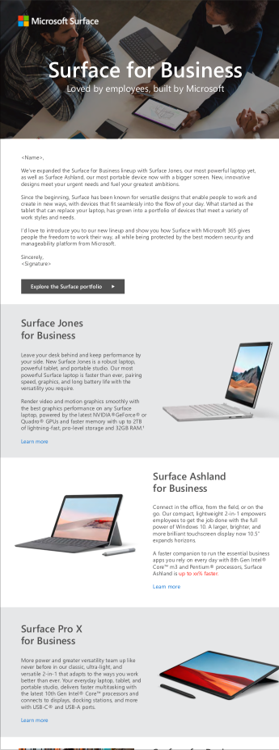 Surface Commercial sales dwarf retail sales and while not as glitzy as the traditional marketing materials the effort that goes into our bi-yearly product launches is equal. The main ask is reframing and reworking all the sales messaging and materials for all Surface products optimized for the commercial audience.