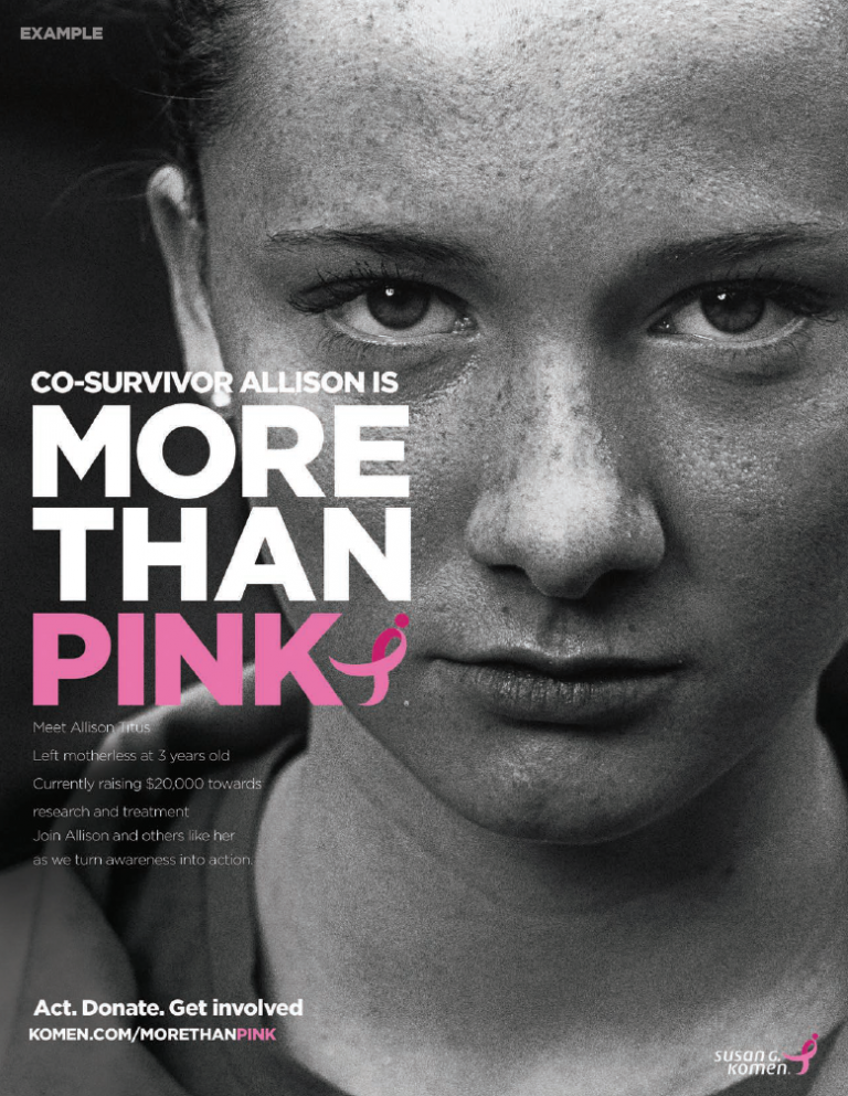 The Pink Ribbon is how people know Susan G. Komen. More Than Pink was a rebranding campaign aimed at getting people to look beyond the color. It was created during a moment of company crisis. The company wanted to get back to it’s core message; Supporting the fight against breast cancer.